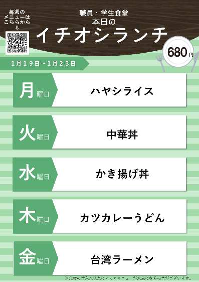 日替わり本日のイチオシのランチです。