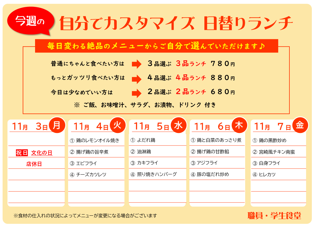 ・普通にちゃんと食べたい方は、3品を選ぶ、3品ランチ